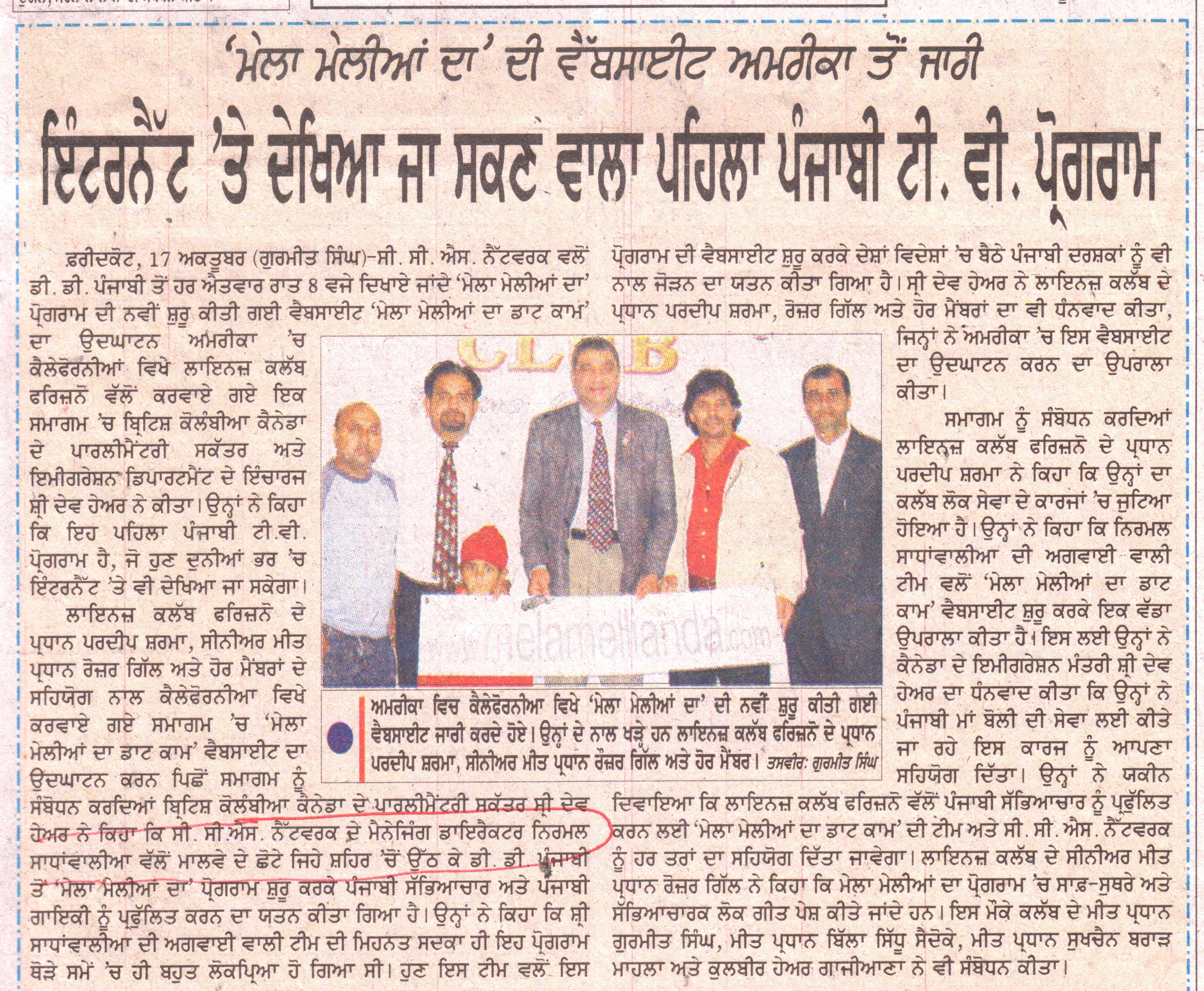 website of Mela Melian Da launched at USA. News Published in Daily Ajit newspaper on 8 October 2007.