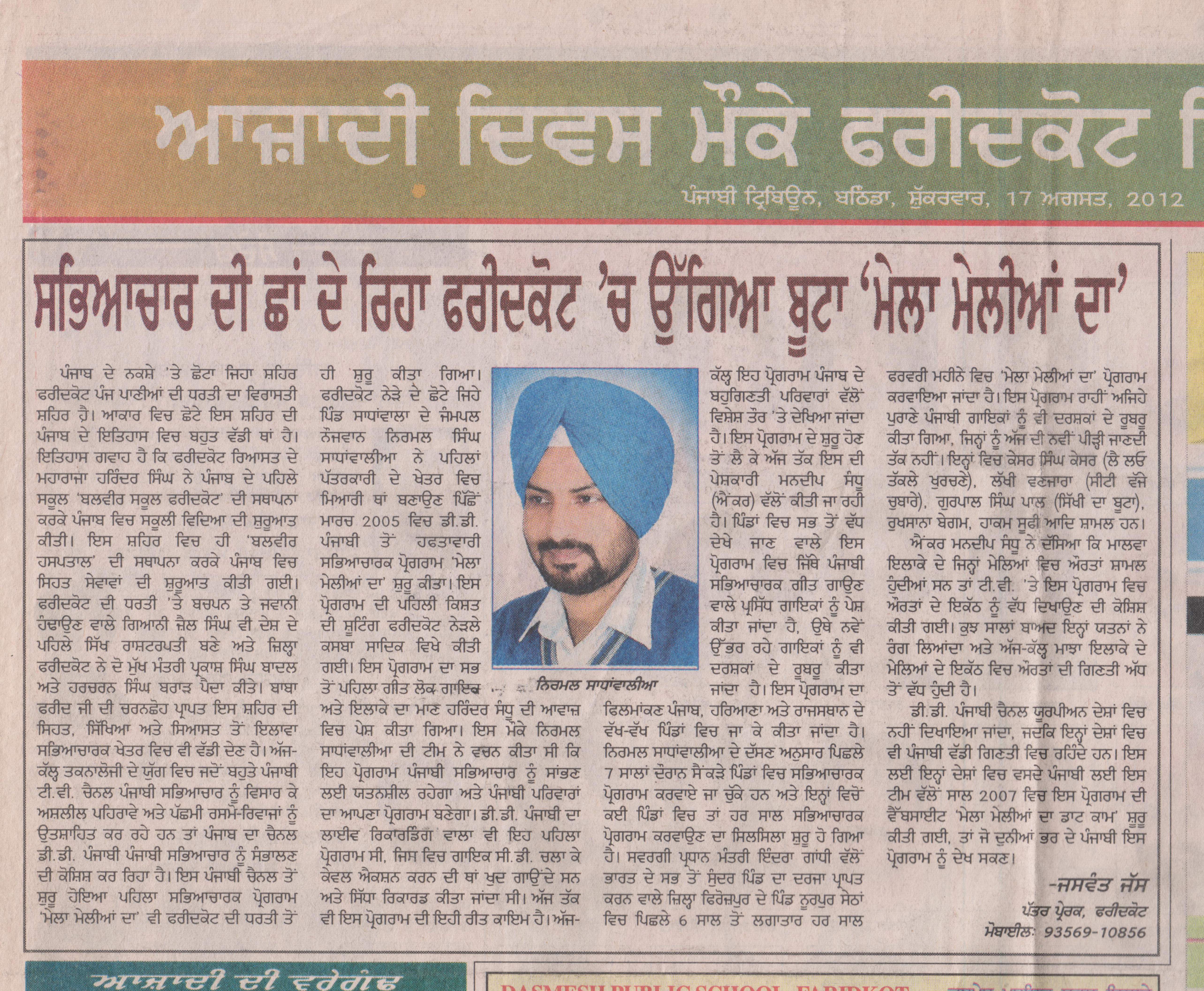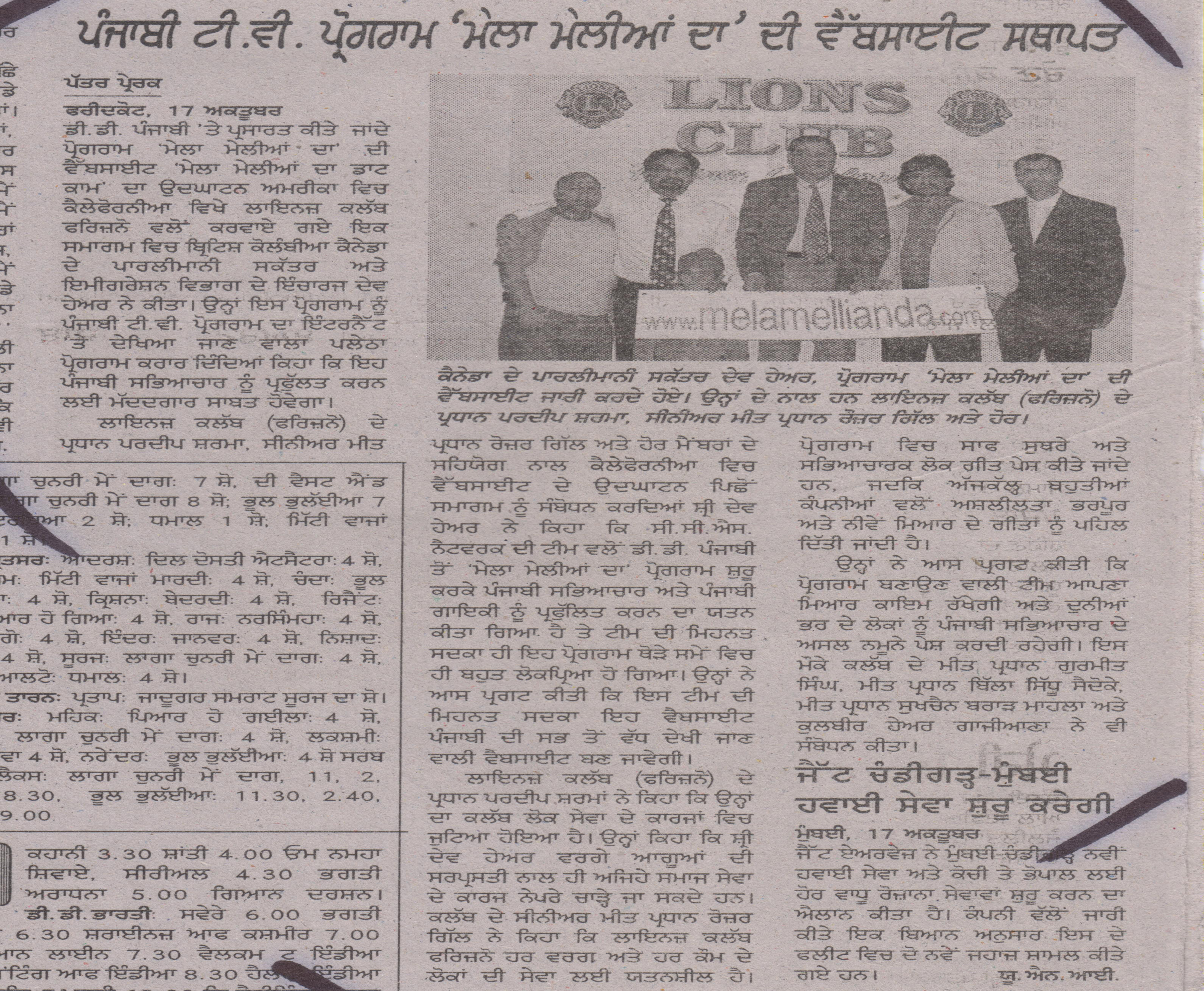 Mela Melain Da is the first TV Programme on internet. Website of this programme launched in USA. News Published in Punjabi Tribune Newspaper on 18 October 2007.