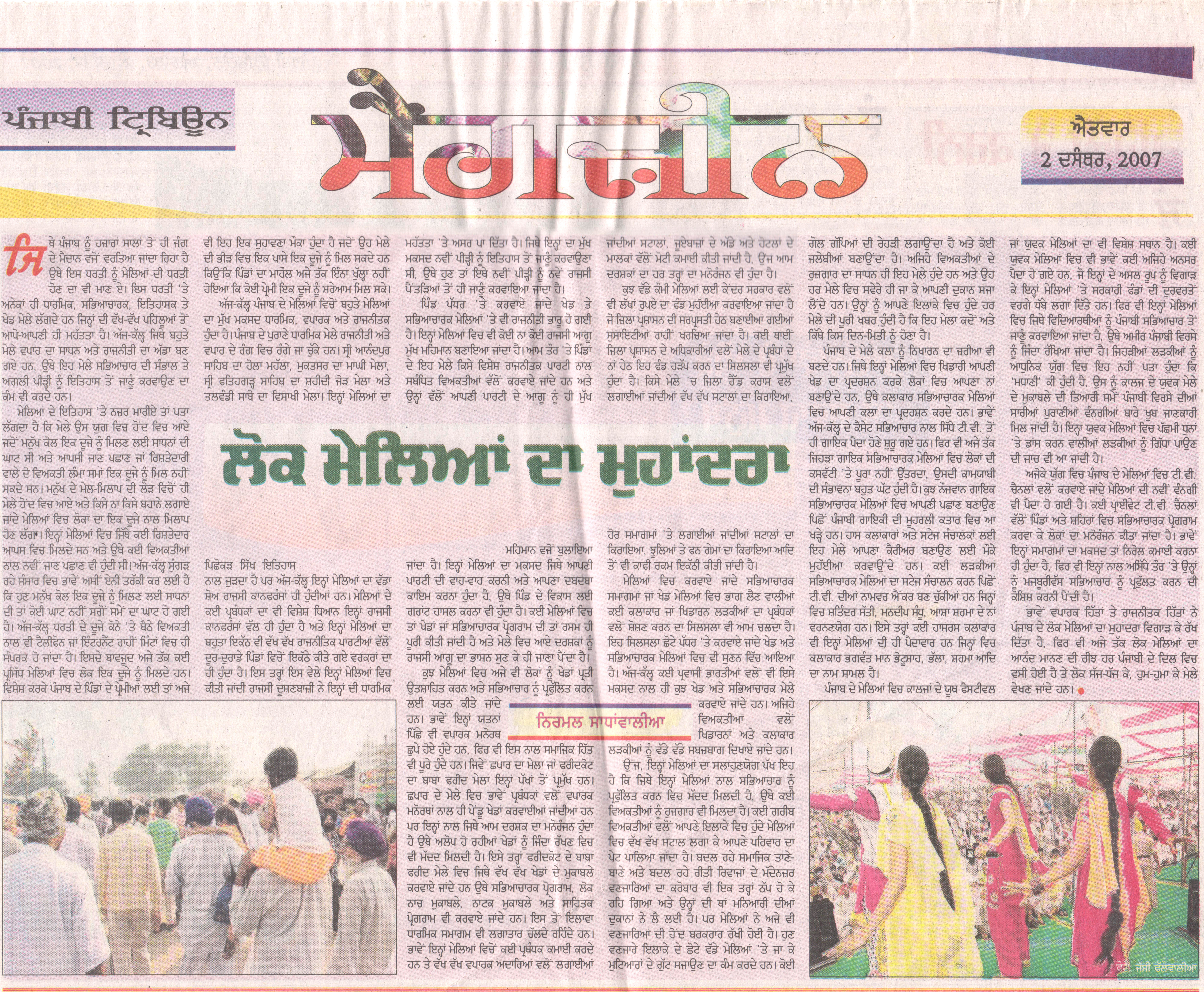 Article written by Nirmal Sadhanwalia, published in Punjabi News Paper 'Punjabi Tribune'.